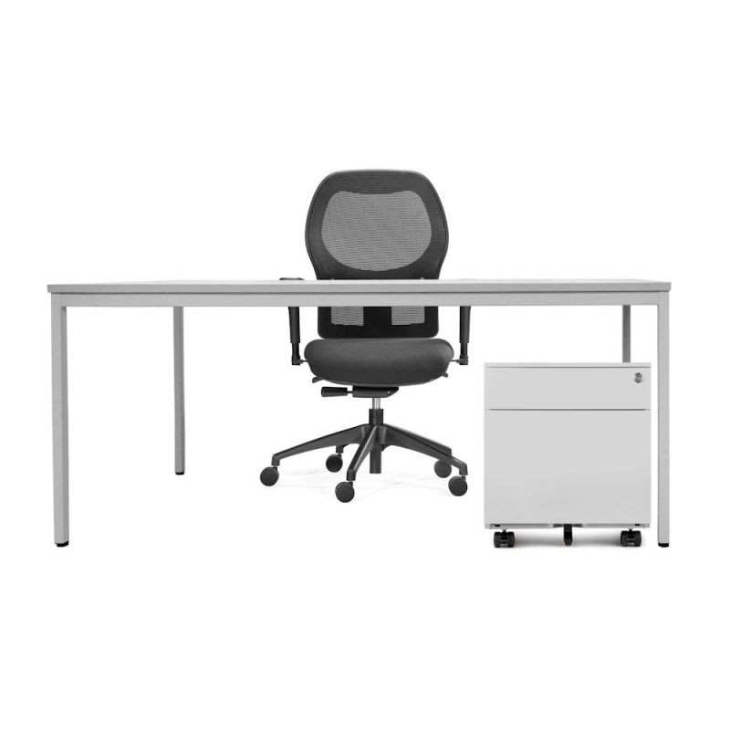 Le plateau en mélaminé de 18 mm d'épaisseur est bordé de chants antichoc en PVC de 2 mm.
