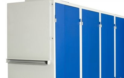 Des coiffes inclinées évitent le stockage d'objets sur le top du vestiaire et facilitent le nettoyage.