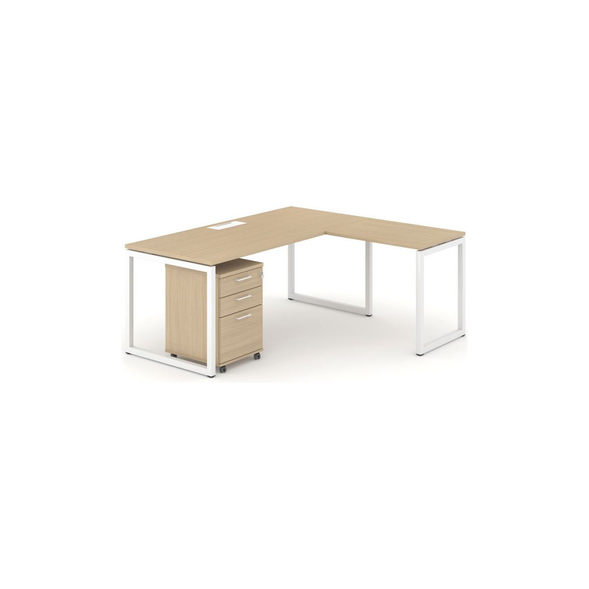 Le plateau en mélaminé (25mm d'épaisseur) Blanc ou Chêne Blanchi propose une trappe et en option un passe-câbles pour ranger les fils électriques (prises non fournies) et libérer ainsi l'espace de travail.