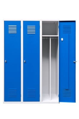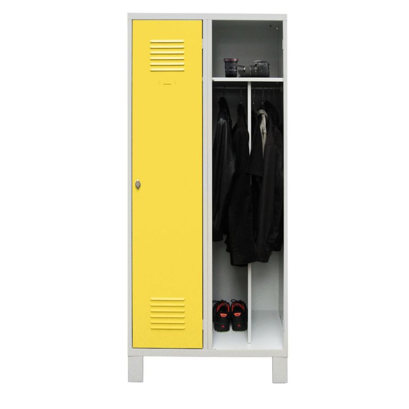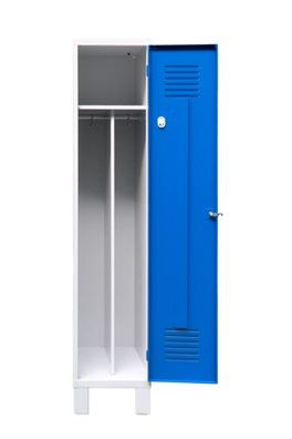 En tôle d’acier 8/10ème pour le corps et les portes, les vestiaires monoblocs L60NF sont sur socle ou pieds soudés. Les portes indégondables offrent des ouïes d’aération hautes et basses et un porte-étiquette. La fermeture se fait par moraillon porte-cadenas. Une étagère intérieure permet d’y ranger casque de moto (version salissante). Chaque case est équipée d’une tablette fixe, d’une barre porte-cintre (2 crochets), d’une patère.