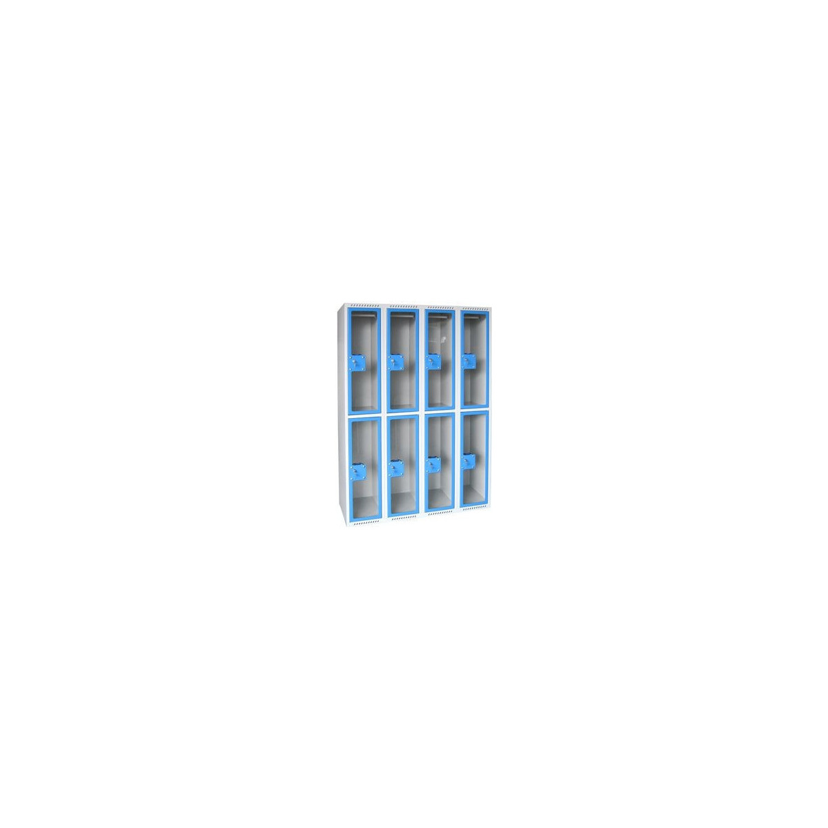 L'aération des casiers se fait grâce à des ouïes situés sur les montants hauts et bas du vestiaire.