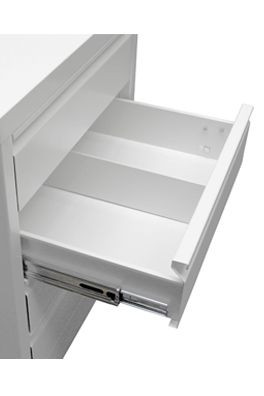 Chaque tiroir est muni d’une séparation et d’un glissière télescopique à billes.
