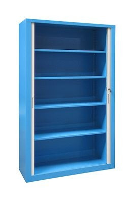 La version portes à rideaux de la gamme Armoires d’Atelier permet en plus de ranger ses outils et autre matériel, de gagner de la place grâce à son ouverture rideaux (ce qui évite le débattement des portes).