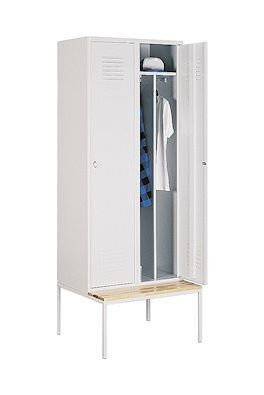 Par ailleurs, l'élévation du vestiaire facilite l'entretien des sols et élimine le risque de corrosion du socle dû à l'humidité et aux produits nettoyants.