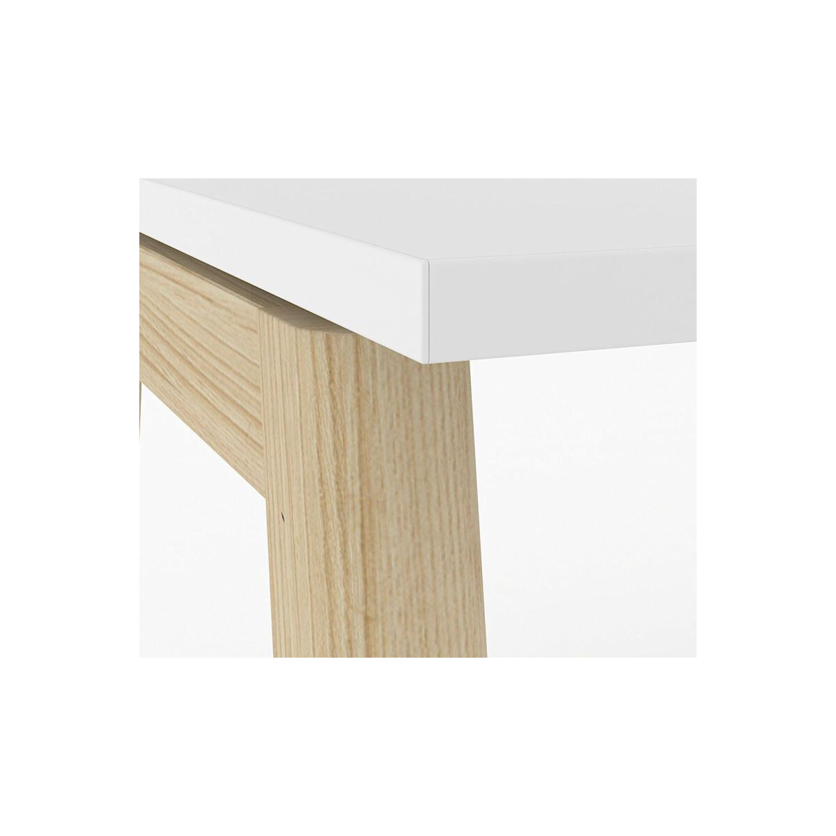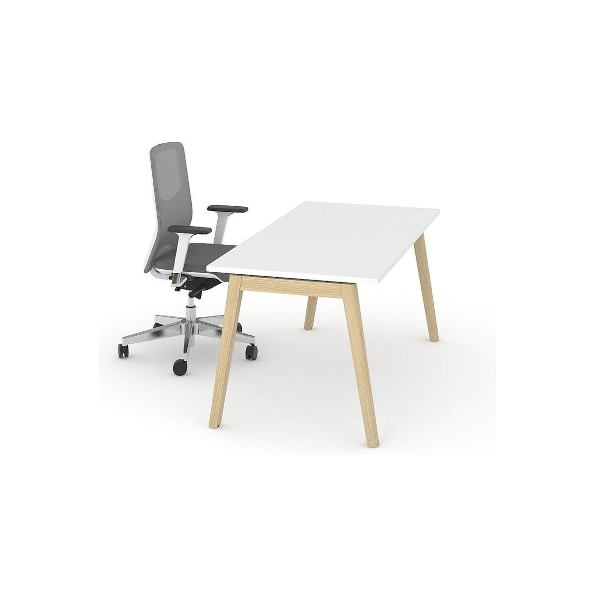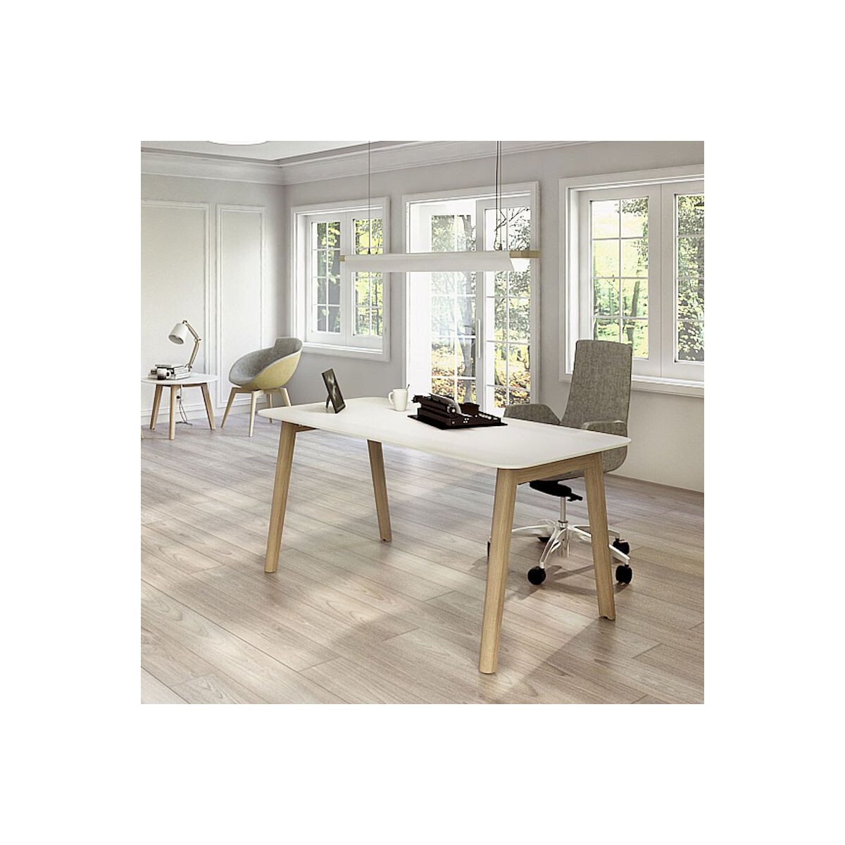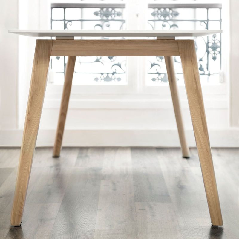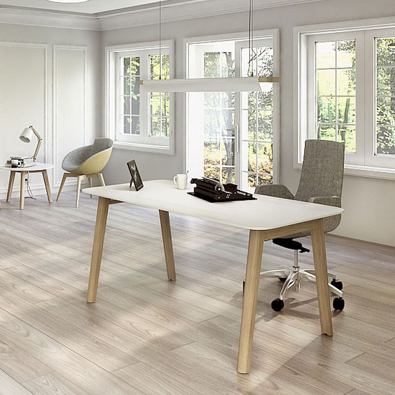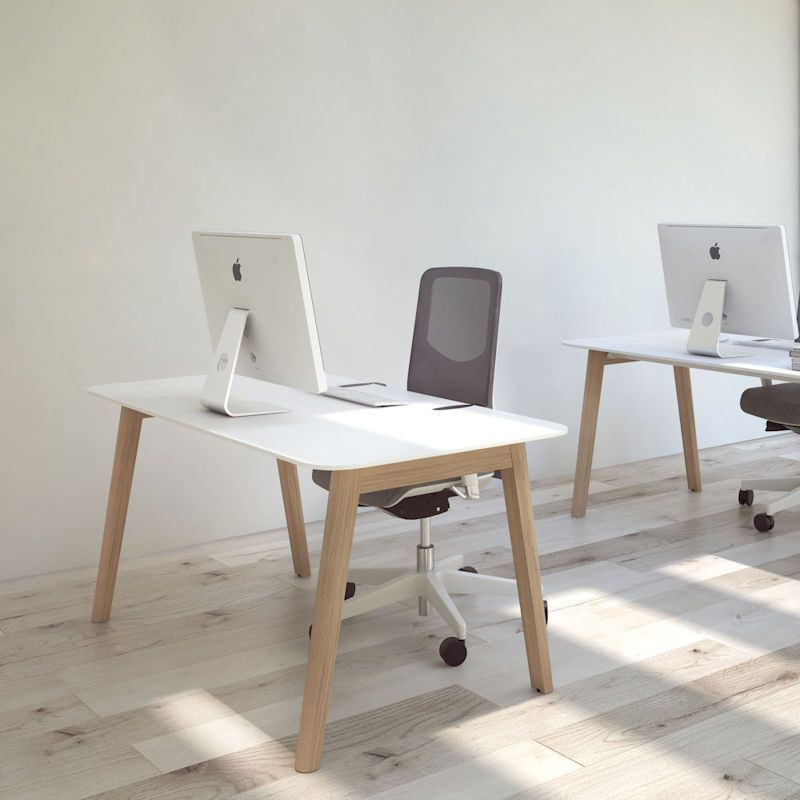 Une structure et des pieds en bois massif associée à un plateau en mélamine Blanc offre une touche moderne et conviviale aux espaces de travail.