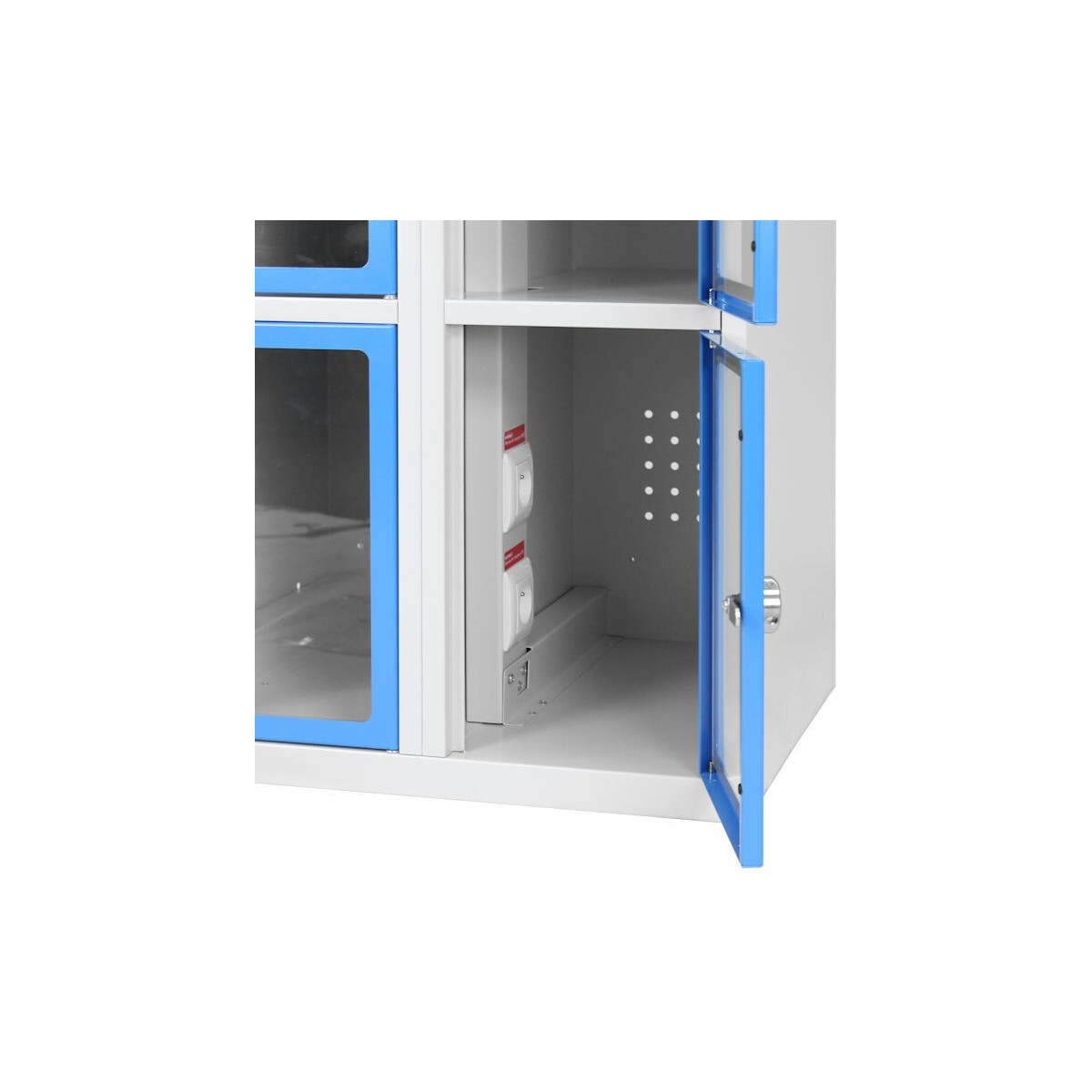 Grâce à cette version dotée de portes en PLEXI, il est possible en un rien de temps de vérifier que les appareils ont bien été mis en charge ou d’identifier ceux qui sont disponibles et rechargés (dans le cas de matériels non attitrés).