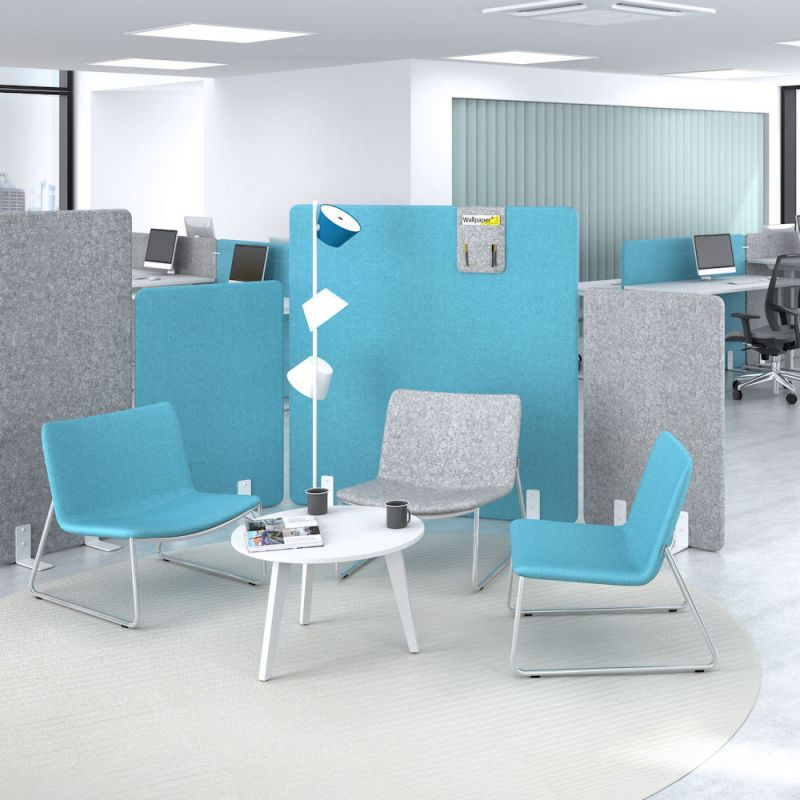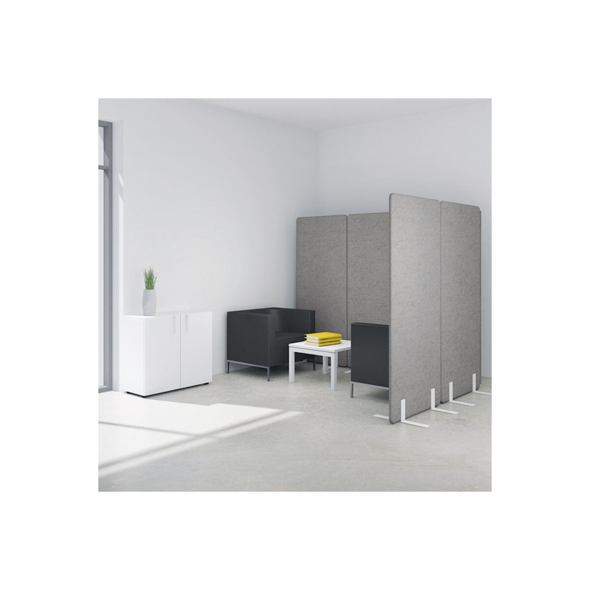 Cette cloison acoustique peut délimiter une espace d’accueil, séparer des bureaux, isoler un coin photocopie ou cafétéria.