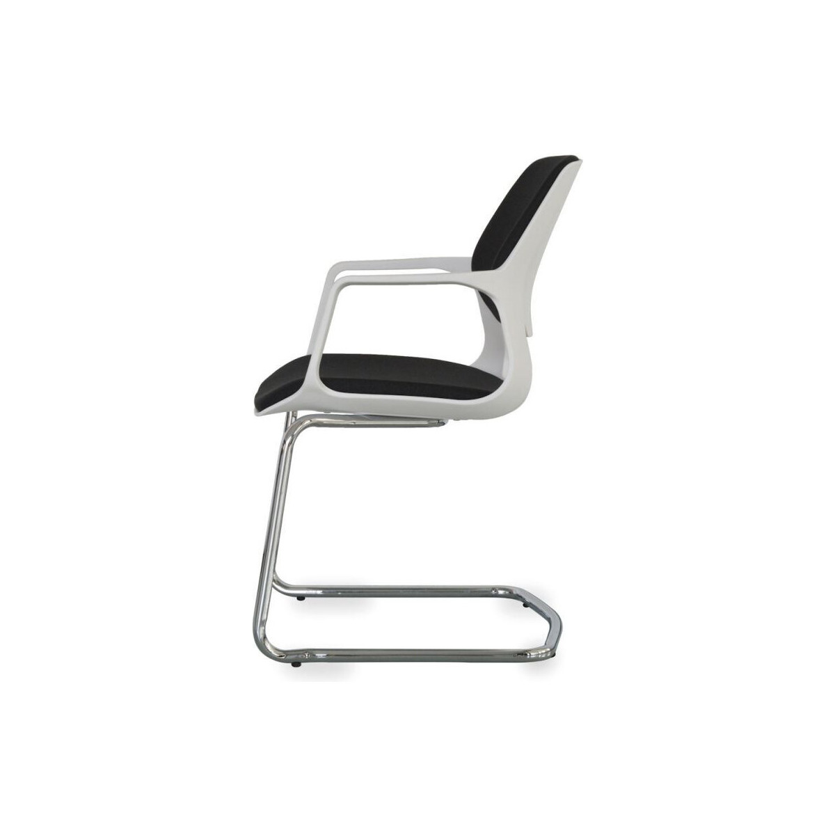 Son assise et son dossier sont garnis de mousse revêtue de tissu NOIR ou GRIS sur une coque existe en Noir et Blanc avec une structure chromé.
