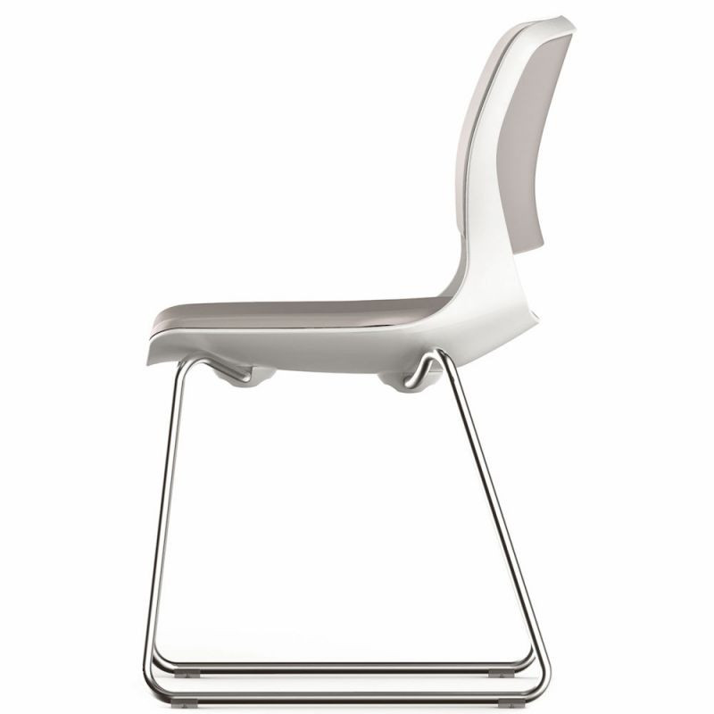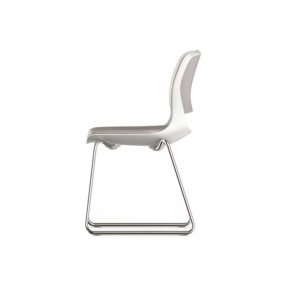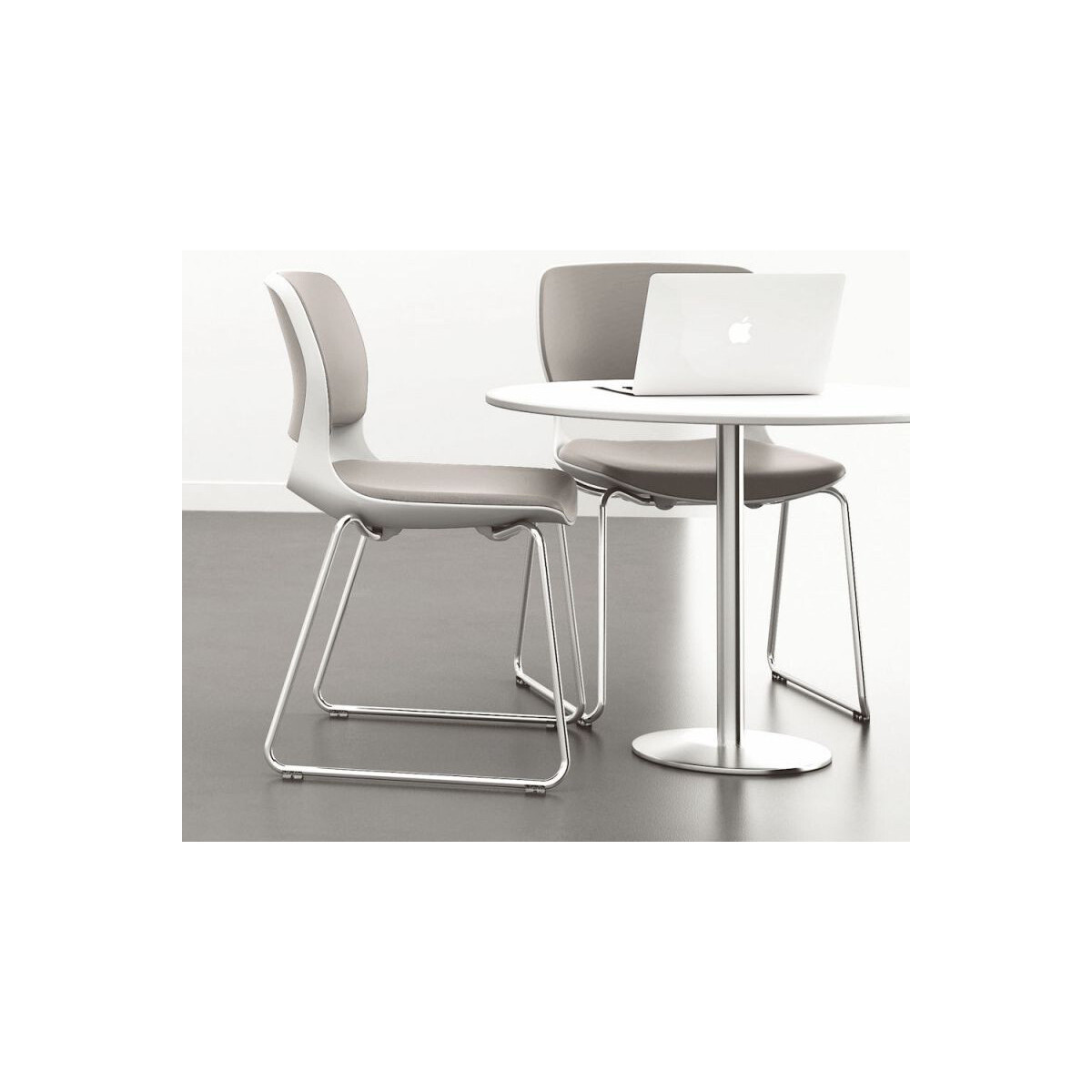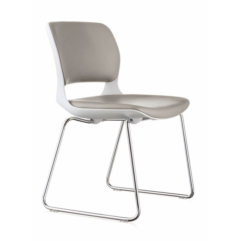 Voici une chaise au design racé et au confort inégalé. la chaise visiteur FIRST est dotée d'une coque en polypropylène haute densité garnie d'une mousse dense et revêtue d'un tissu très technique en simili cuir Taupe.