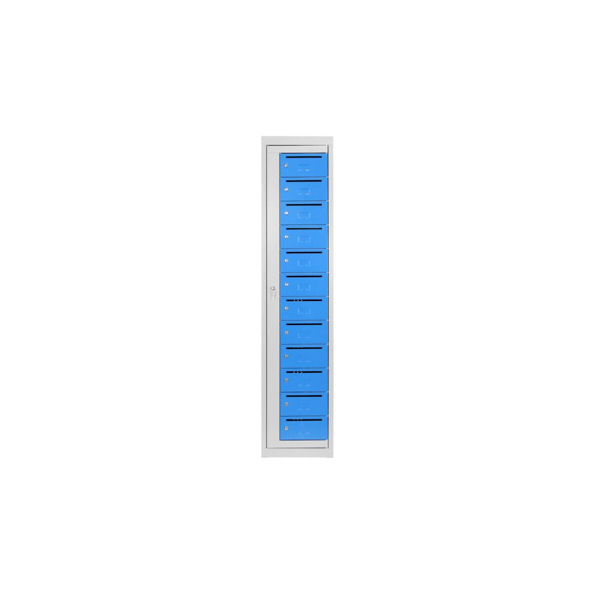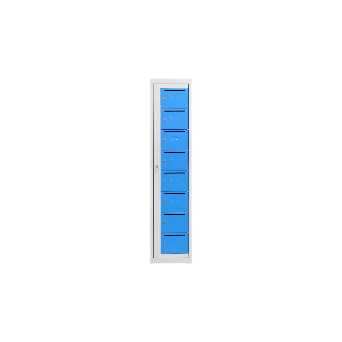 Ces distributeurs de linge sont fabriqués en tôle d'acier. Ils se déclinent en armoire de 6, 8, 10 ou 12 cases sur la hauteur.