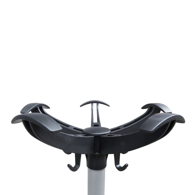 Le portemanteaux à têtes pivotantes est équipé de 5 têtes et de 5 crochets à la base, le tout monté sur un axe en tube chromé de 50mm de diamètre.